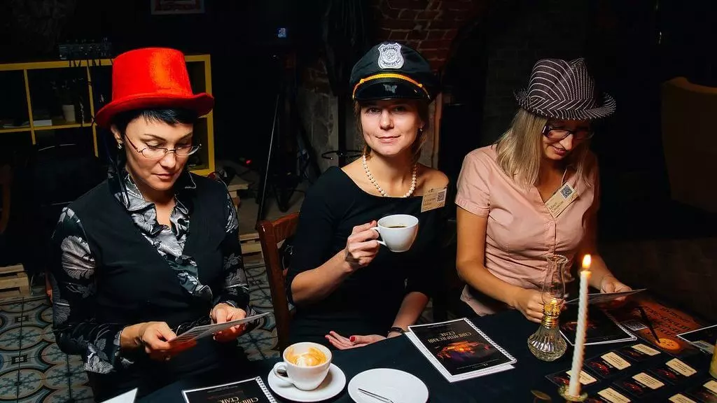 Мы подберём для вас кафе, идеально подходящее для игры. В зависимости от количества гостей: просторное, с несколькими залами или одну уютную комнату. Постараемся, чтобы интерьер подчеркнул атмосферу сценария — средневековая таверна, литературный салон или палуба корабля.