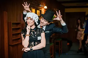 Чтобы гости погрузились в атмосферу сюжета и почувствовали себя героями, в Кемерово к каждому сценарию предусмотрен набор аксессуаров. Шляпа для детектива, медицинский халат для доктора, тёмная вуаль для медиума.